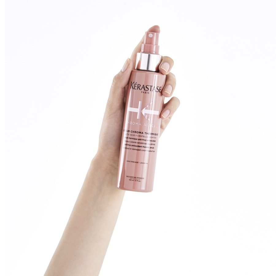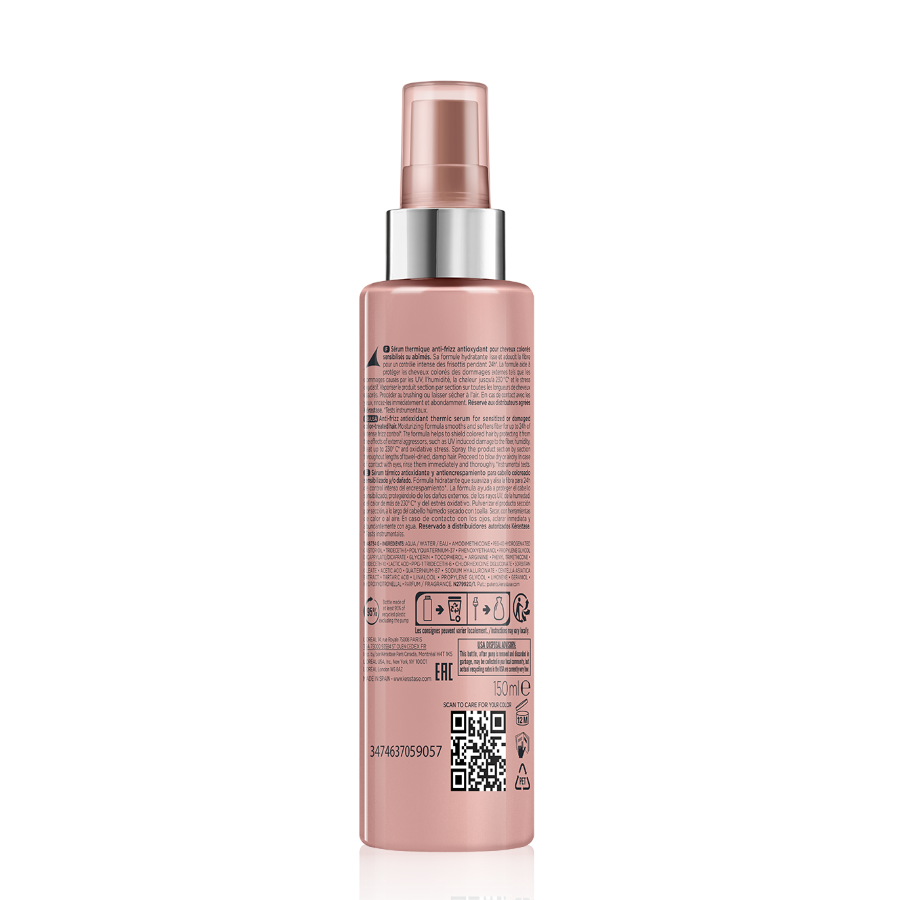 Anti-Frizz Hitzeschutz-Serum mit Antioxidantien für coloriertes geschädigtes oder sensibilisiertes Haar. Schützt Ihre Haarfarbe vor UV-Schäden und durch Coloration verursachten Frizz. Verleiht dem Haar Feuchtigkeit & glättet die Haaroberfläche für ein geschmeidiges Haargefühl und intensiven Glanz.Die milchige, mit Milchsäure und Centella asiatica angereicherte Textur mit antioxidativen Eigenschaften hilft, die Farbe zu bewahren, indem sie die Haarfaser vor zahlreichen schädigenden Einflüssen von außen schützt: Schäden durch UV-Strahlen, Luftfeuchtigkeit, Wärme und oxidativem Stress.