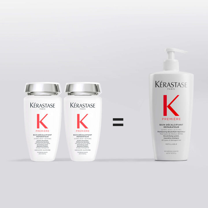 Für optimale Wirksamkeit mit dem Auftragen des Vorbehandlungskonzentrats Concentré Décalcifiant Ultra-Réparateur beginnen. 5 Minuten einwirken lassen, nicht ausspülen und das Shampoo Bain Décalcifiant Réparateur darüber auftragen. Ausspülen und im Anschluss die Haarmaske Masque Filler Réparateur oder den Conditioner Fondant Fluidité Réparateur auftragen, um das Haar weich zu pflegen und seine Oberfläche zu reparieren. Zum Schluss das Sérum Filler Fondamental und/oder das Haaröl Huile Gloss Réparatrice für Schutz vor Hitze und intensiven Glanz verwenden.