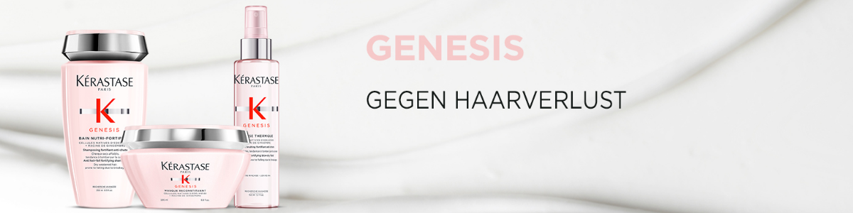 Genesis - Die duale Anti-Haarverlust Haarpflege von Kérastase. Für Alle, für jeden Lifestyle. Produkte, voll mit der Kraft von Aminexil, Edelweiss-Zellen und Ingwerwurzeln. Handeln Sie jetzt und schenken Sie Ihrem Haar mit Genesis die Pflege, die es braucht: Eine exklusive Anti-Haarverlust Haarpflege für Alle, in allen Lebenslagen, mit unterschiedlichem Ausmaß an Haarverlust. Die erste duale Haarpflege, um Haarverlust durch Haarbruch und durch eine geschwächte Haarwurzel zu reduzieren. Genesis reduziert Haarverlust durch Haarbruch durch die Stärkung der Haarfaser und Stimulierung der Haarwurzel. Das Haar ist gekräftigt und schöner durch einen gesünderen, volleren Look. Finden Sie die beste Routine, abgestimmt auf Ihren Haartyp.