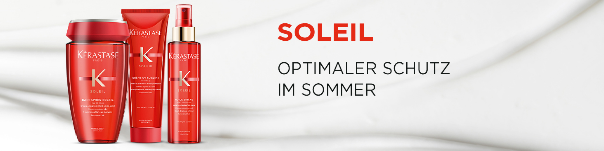 Eine Pflegeserie für von der Sonne beanspruchtes Haar, pflegen und schützten Sie Ihr sonnenverwöhntes Haar mit den Produkten der Kerastase Soleil Serie. Wie auch Ihre Haut braucht Ihr Haar eine Sonnenpflege, um Trockenheit und Brüche zu vermeiden. Entdecken Sie den ultimativen Sonnenschutz, kombiniert mit dem Genuss sensorischer Texturen und einem sommerlichen Blumenduft. Die Soleil-Linie spendet Ihrem Haar dank der neuen professionellen Rezepturen den ganzen Sommer über Feuchtigkeit. Eine einzigartige Wirkstoffkombination: Kokoswasser zum Befeuchten, Vitamin E zum Reduzieren von Bruch und Schützen und UV-Filter zum Schützen vor der Sonne.