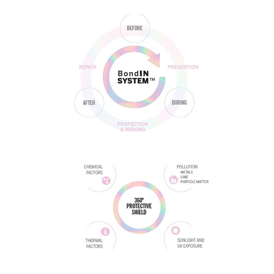 Speziell für chemisch behandeltes Haar entwickelt. Es stärkt die innere Struktur von angegriffenem und geschädigtem Haar nach einem technischen Service. Mit Bonding-Wirkstoffen, die neue Bindungen schaffen und die Haarfaser stärken. Für beste Farbergebnisse sowie gesündere Haarfasern. Schmutzpartikel auf dem Haar werden neutralisiert und abgewehrt, negativen Auswirkungen von schlechter Wasserqualität wird entgegengewirkt, die Haarfaser wird verstärkt, ein Schutzschild wird aufgebaut, um die besten Farbergebnisse zu erzielen, während das Haar geschützt wird.